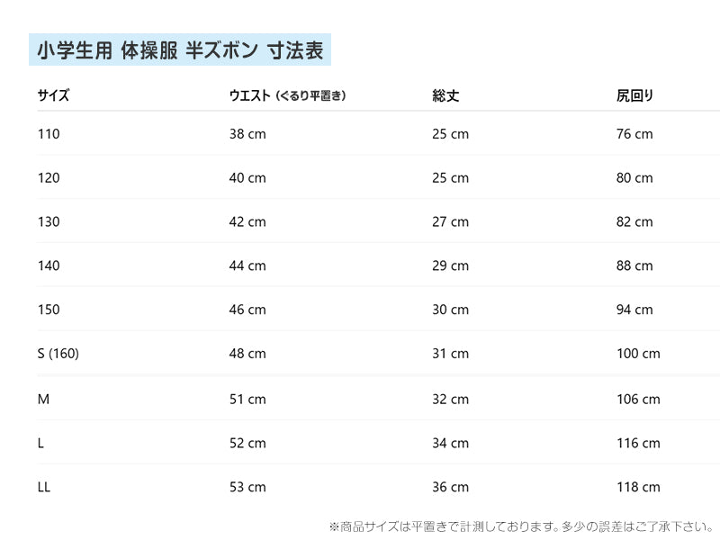 クォーターパンツ 小学生 体操ズボン 男子 女子 110cm~160cm