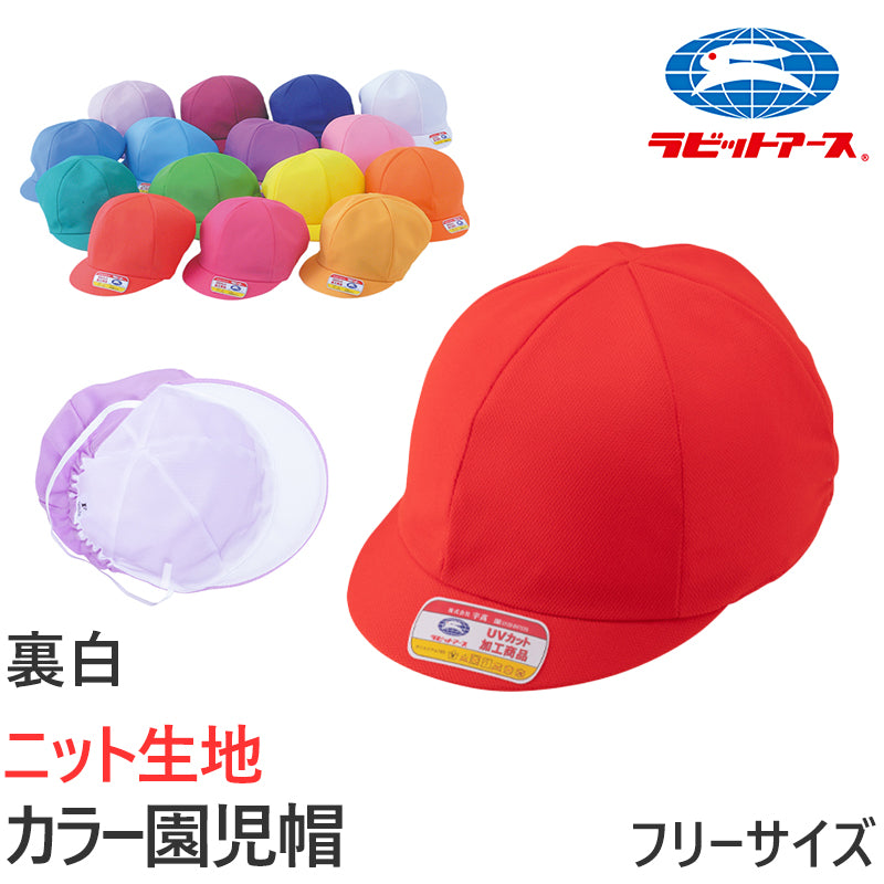 園児帽子 男の子 女の子 ゴム付き キャップ カラー豊富 裏面は白色 紫外線対策 定番 赤 白 青 ピンク ニット生地 ポリエステル フリー