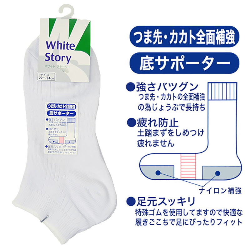 ホワイト/学校/スクール/つま先・カカト全面補強/底サポーター/日本製/WhiteStory k-soc-sn 130130-19 130130-22 130130-25 130130-28/ON/130130