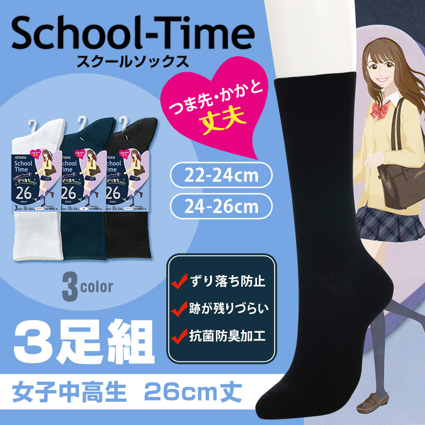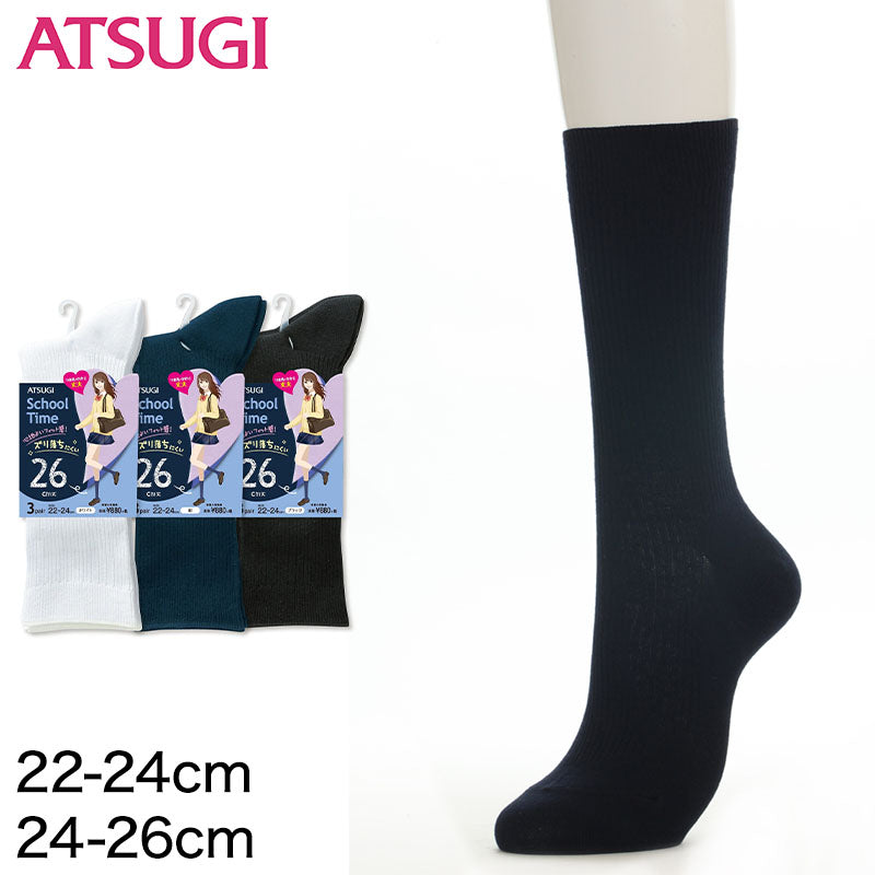アツギ(ATSUGI)School Time(スクールタイム)のスクール用 クルーソックス(26cm丈)です。