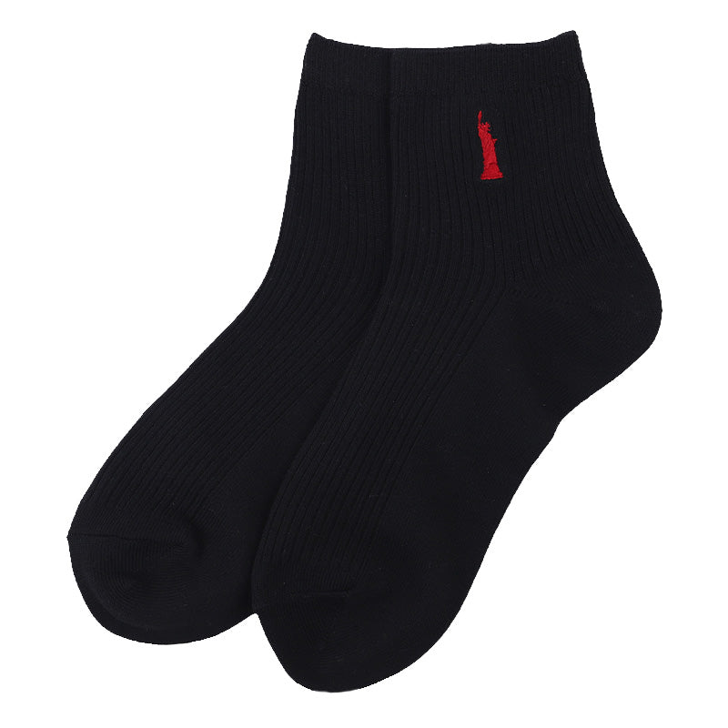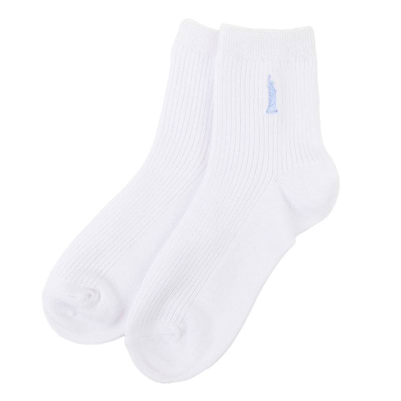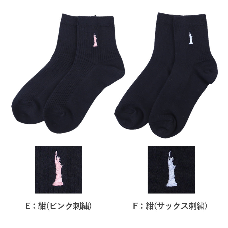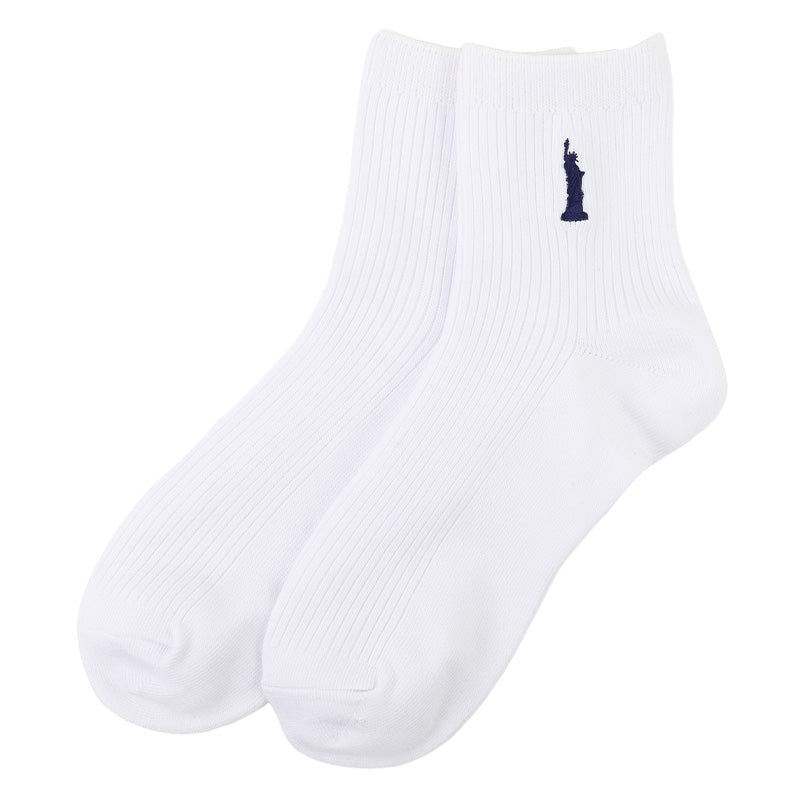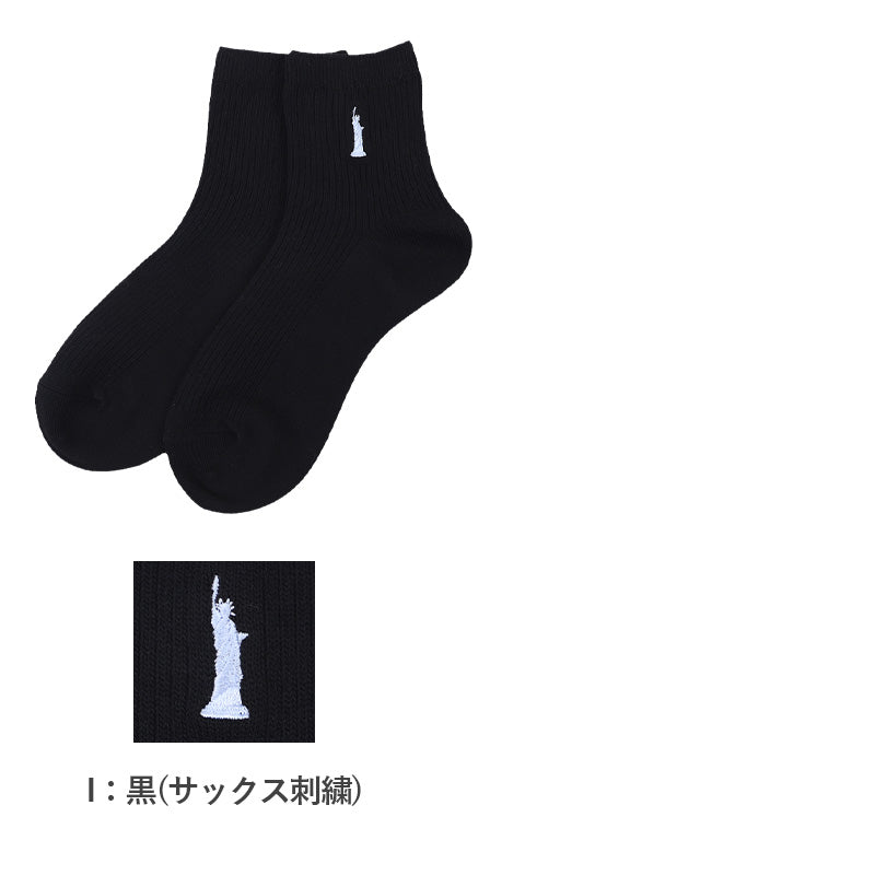 自由の女神がデザインされた刺繍入りの定番ソックスです。