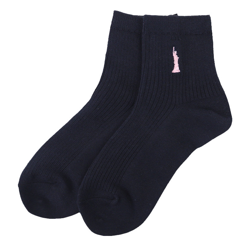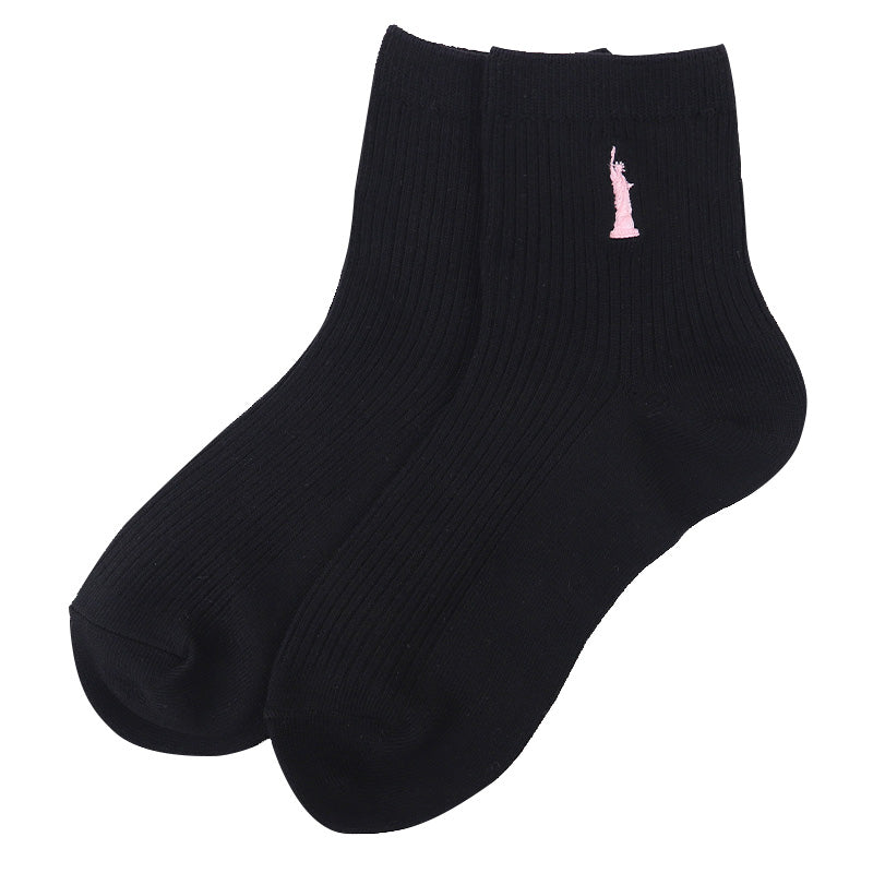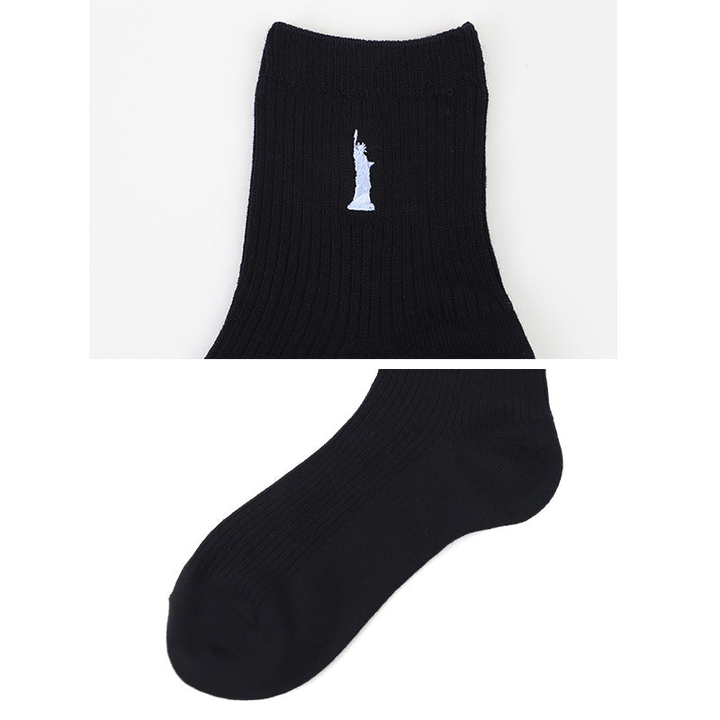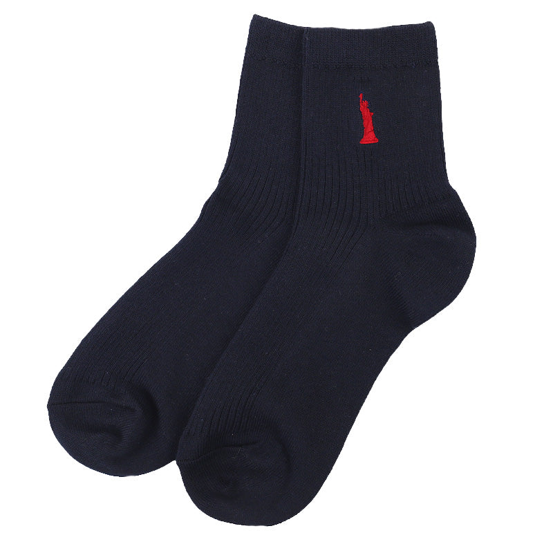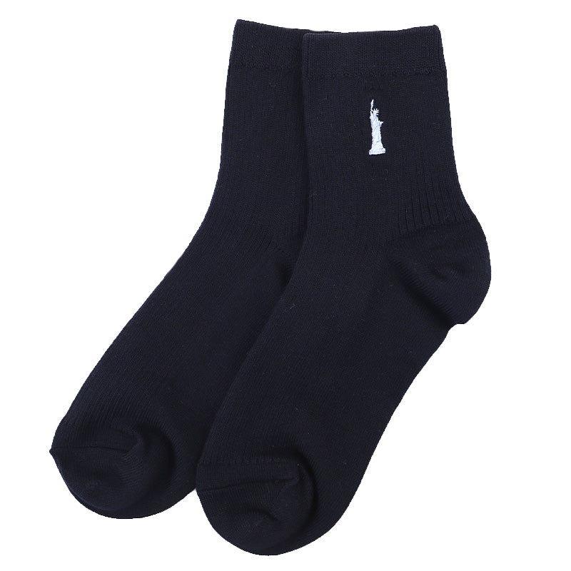自由の女神がデザインされた刺繍入りの定番ソックスです。