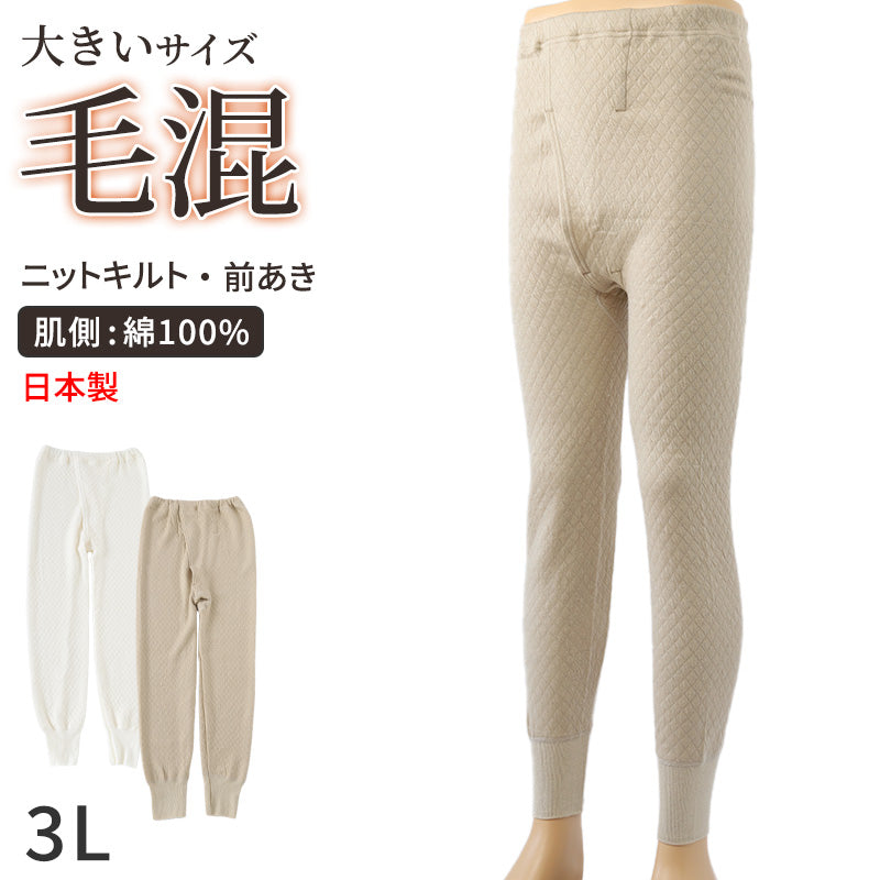 キルト ズボン下 大きいサイズ メンズ 肌着 毛混 日本製 綿100 3L