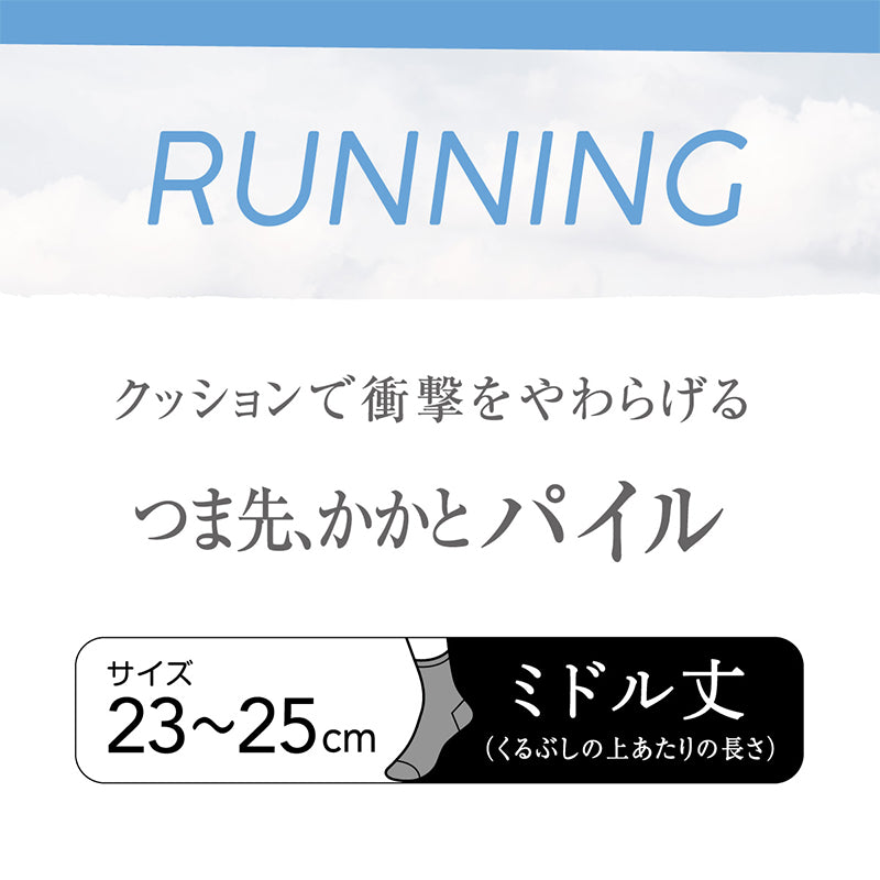 つま先とかかと部分がクッション性のあるパイルとなっており、運動による地面からの衝撃をやわらげてくれます。