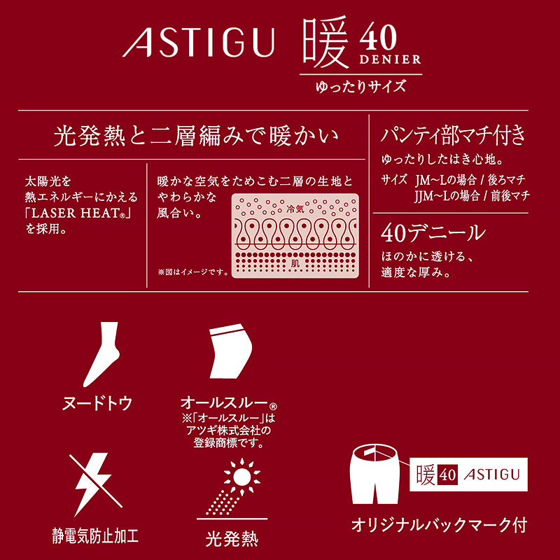 アツギ アスティーグ 暖 発熱タイツ 40デニール やわらかい JM-L
