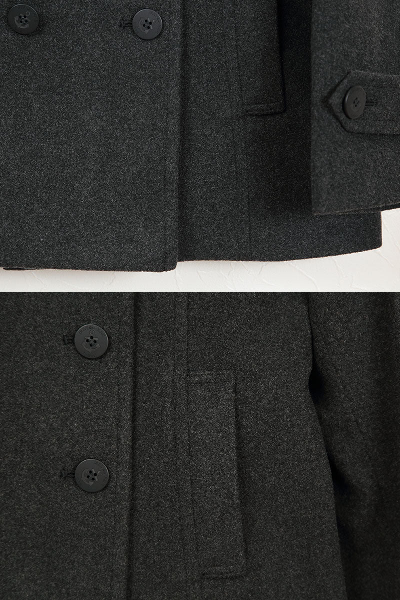 着丈の短いショート丈のシンプルPコートで、セーラー服やブレザーなどの学生服スカートとの相性もバッチリ。