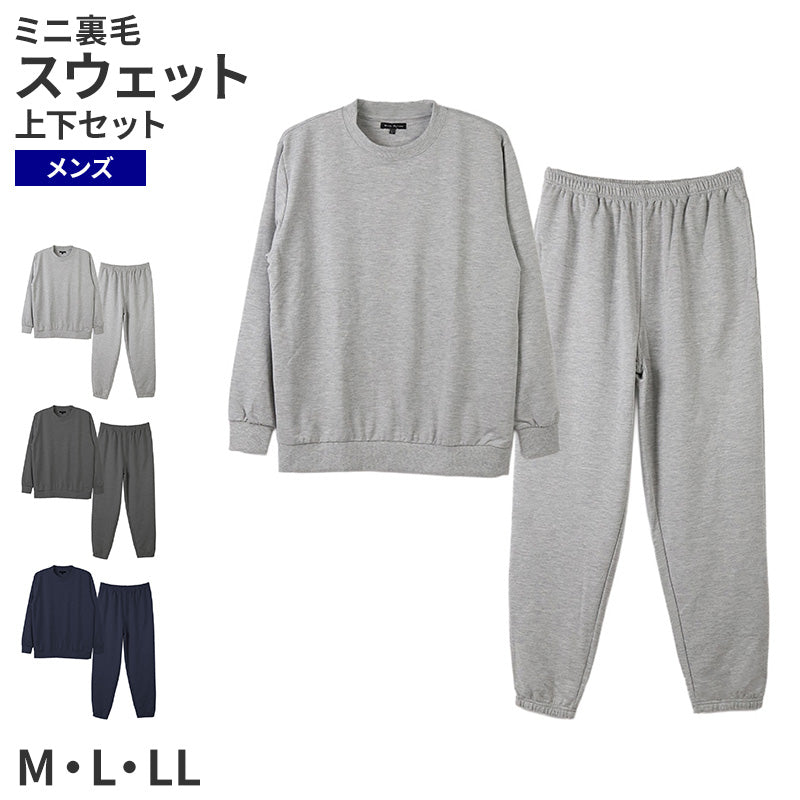 メンズ セットアップ ルームウェア スウェット 紳士 ミニ裏毛 無地 上下セット M L LL