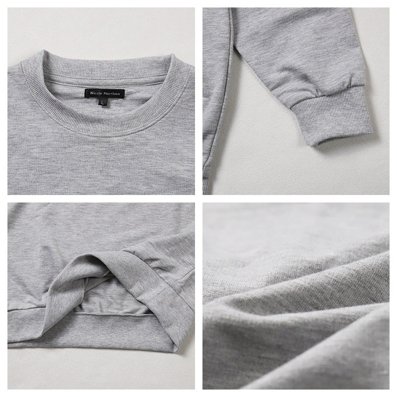 ミニ裏毛仕様のスウェット素材は、ポリエステルを多く含むことで軽やかさとシワになりにくい扱いやすさを実現しています。