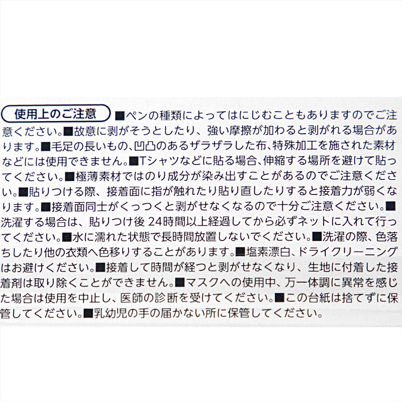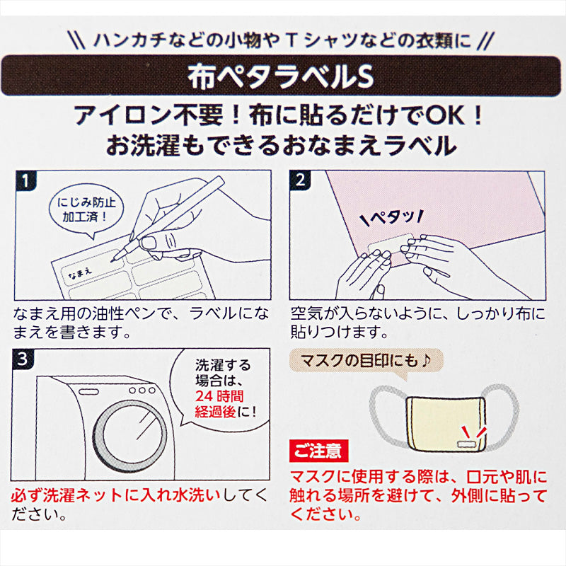 洗濯してもはがれにくい強力接着タイプなので、ハンカチや給食袋、布マスクなど、毎日使って洗う布製品にもぴったり。