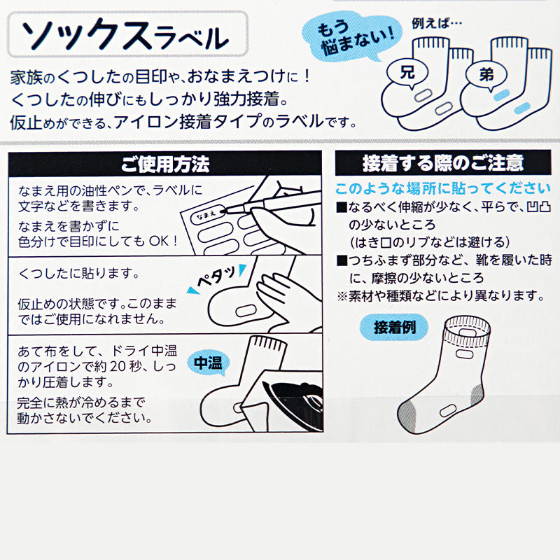 靴下の伸びにも対応する強力タイプで、洗濯にもはがれにくい安心設計。