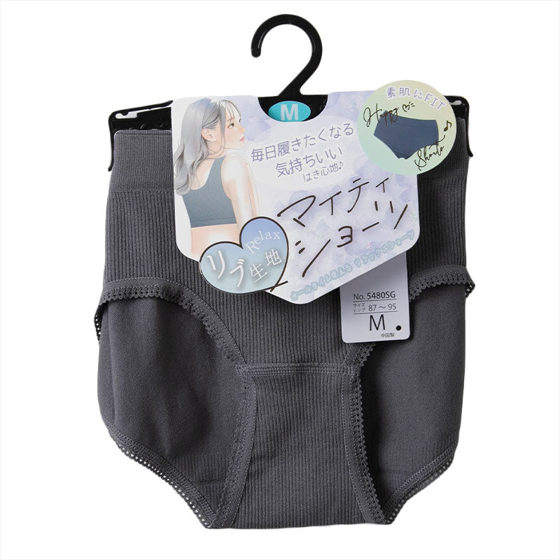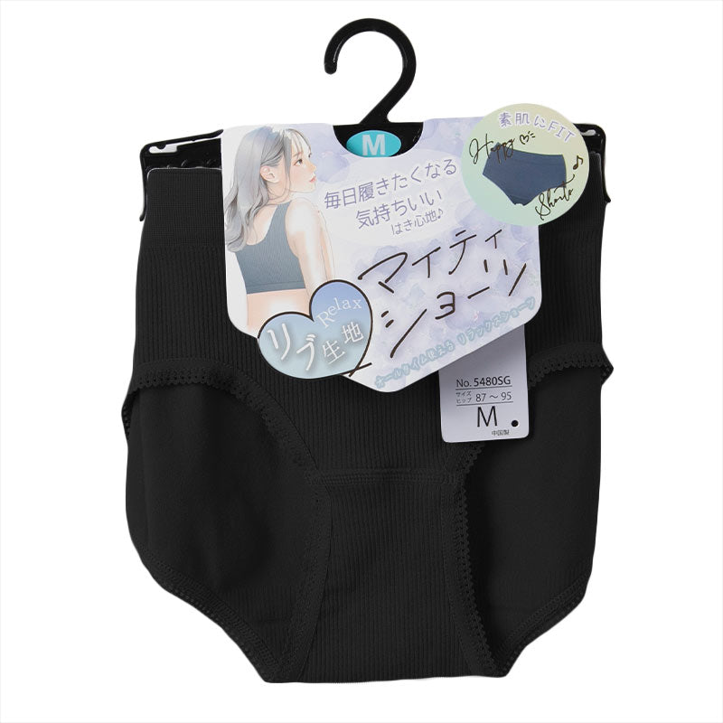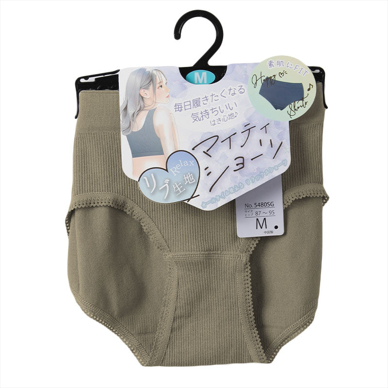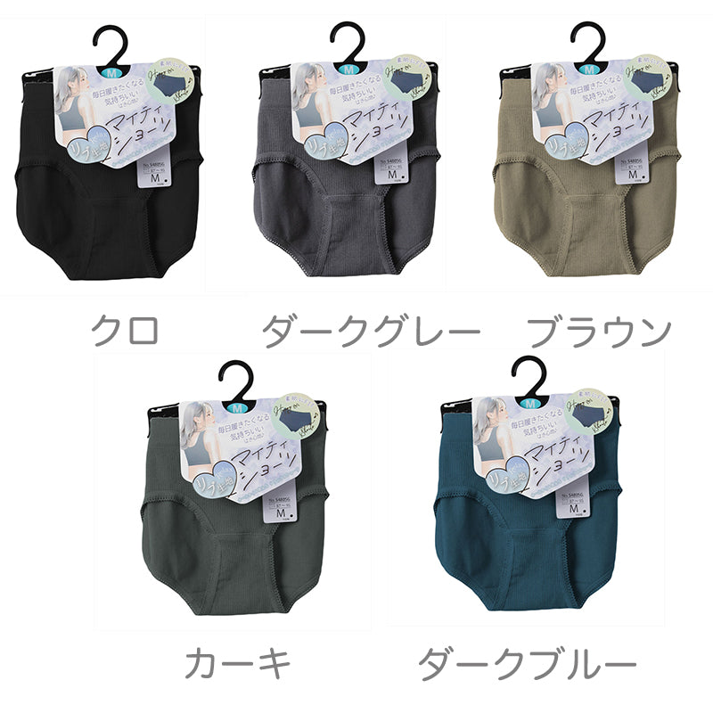 ショーツ リブ生地 やわらか 優しいフィット感 無地 シンプル リラックス ストレッチ 伸縮性 伸びる ヨガ おうち 自宅 ゆったり らくらく 黒 グレー 茶 青 緑 M L LL M~LL