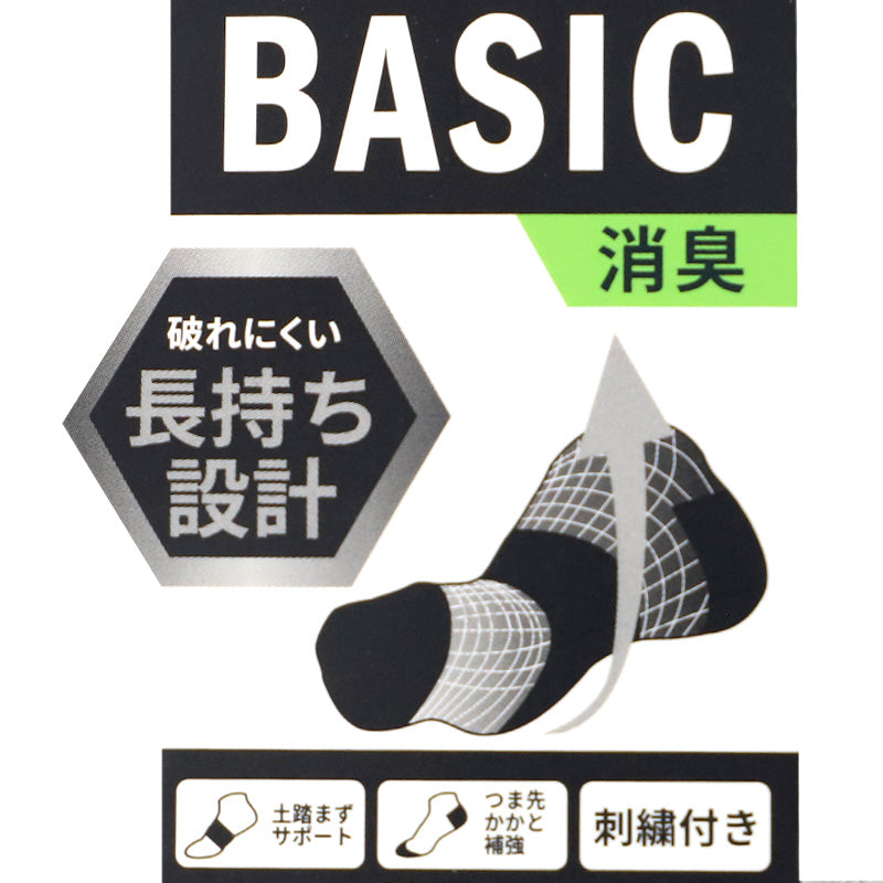 靴下 ショート ソックス くるぶし丈 メンズ ソックス 3足組 24-26cm/26-28cm/28-30cm 中学生 高校生 黒 男性 紺 くつ下 ワンポイント 丈夫 消臭 補強