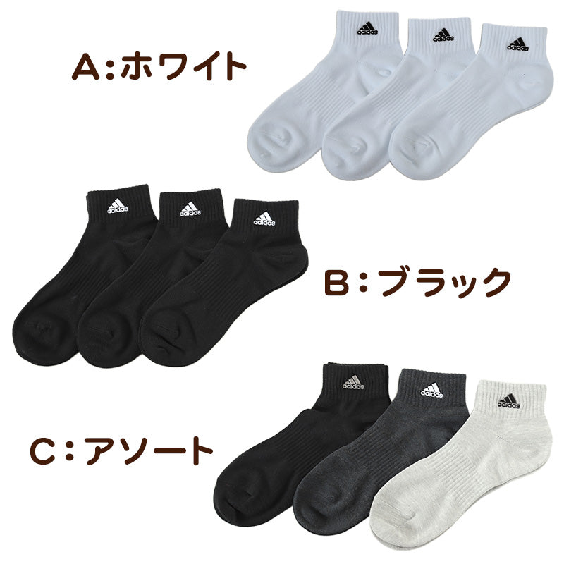 靴下 くるぶし丈 ソックス メンズ 男子 アディダス adidas 3足組 24-26 26-28cm 子ども くつ下 ワンポイント 丈夫 スポーツ 無地 子供 メッシュ ソックス 消臭