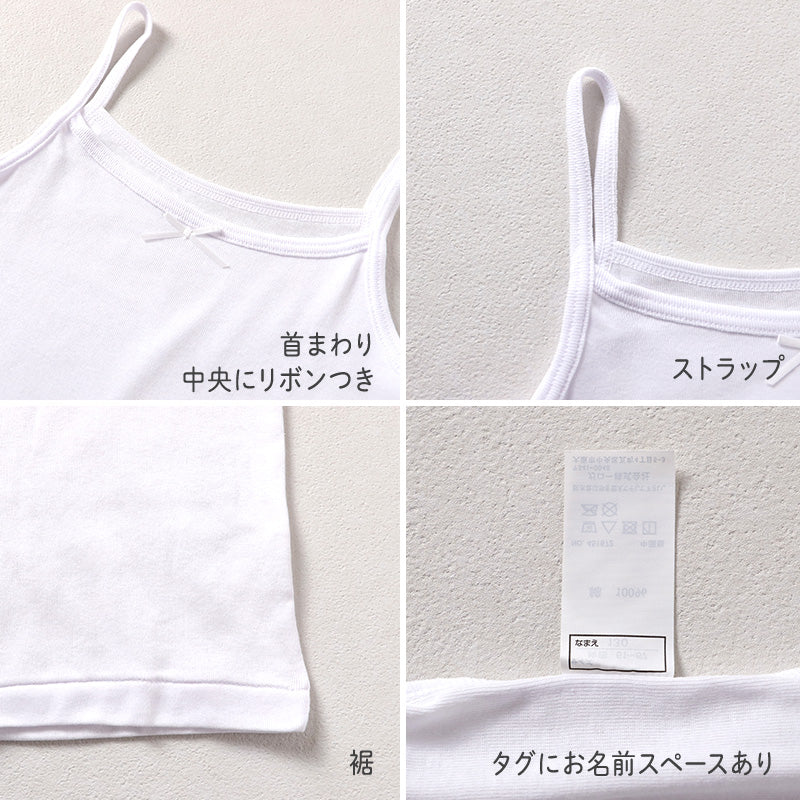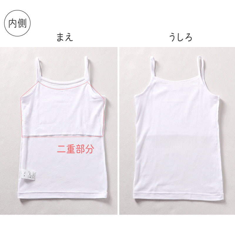 綿100% 胸二重 キャミソール 2枚組 吸水速乾 女の子 ジュニア インナー 130 140 150 160cm