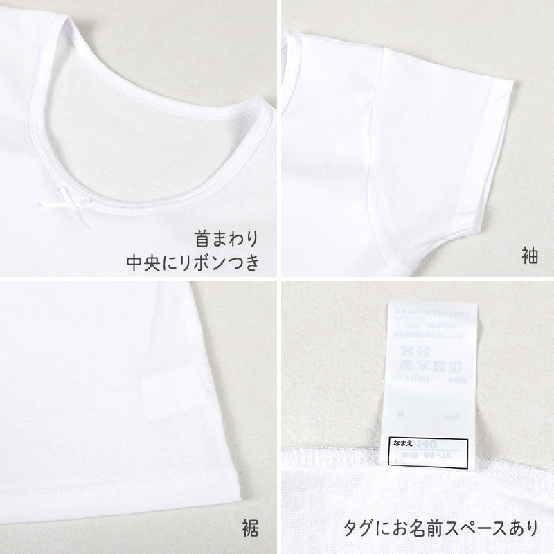 シンプルな半袖タイプだから、制服や私服の下でもラインが出にくく、すっきりとした印象に。