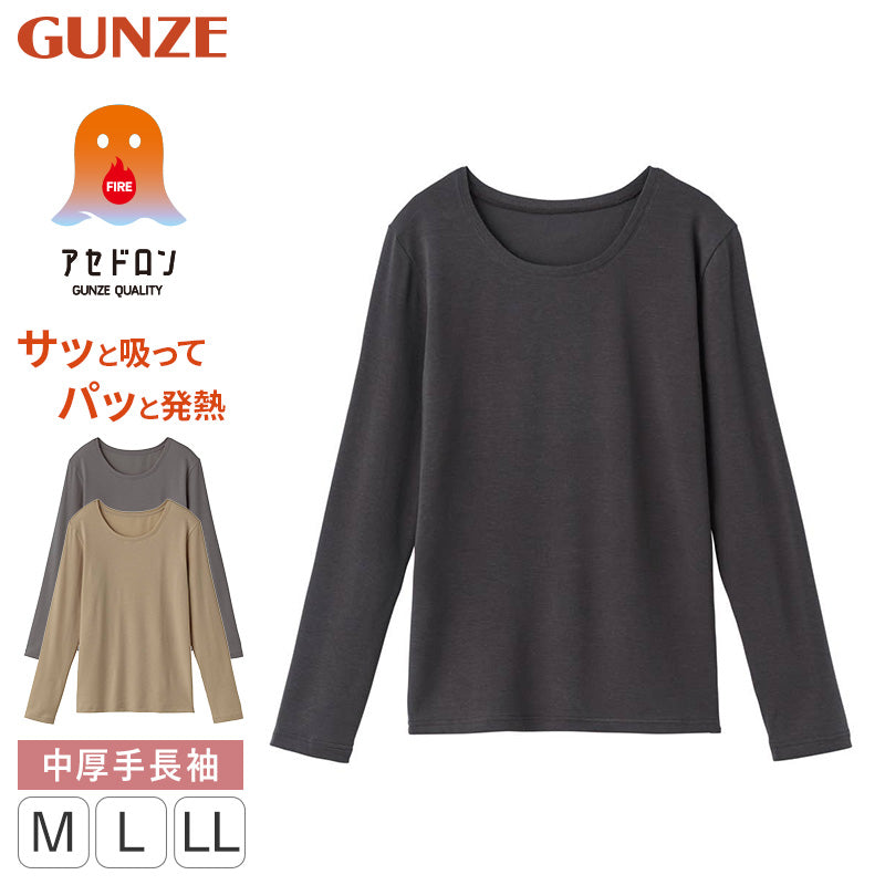 グンゼ ファイヤーアセドロン レディース 長袖 丸首 インナー シャツ 裏起毛 M L LL