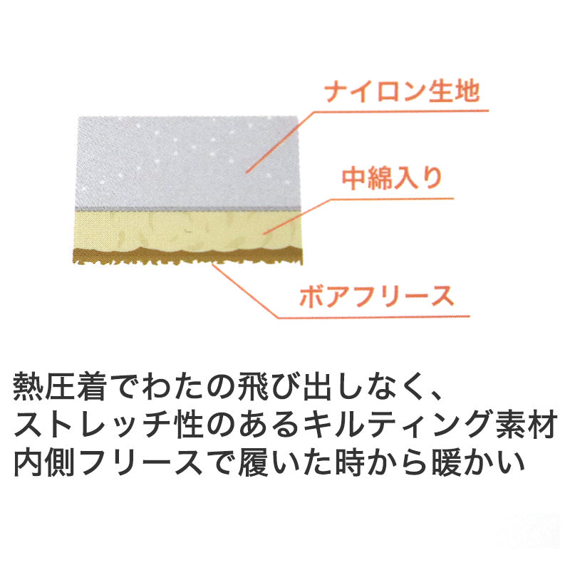 ストレッチキルト 内側ボア 保温設計 撥水加工 足底すべり止め付き 洗濯OK