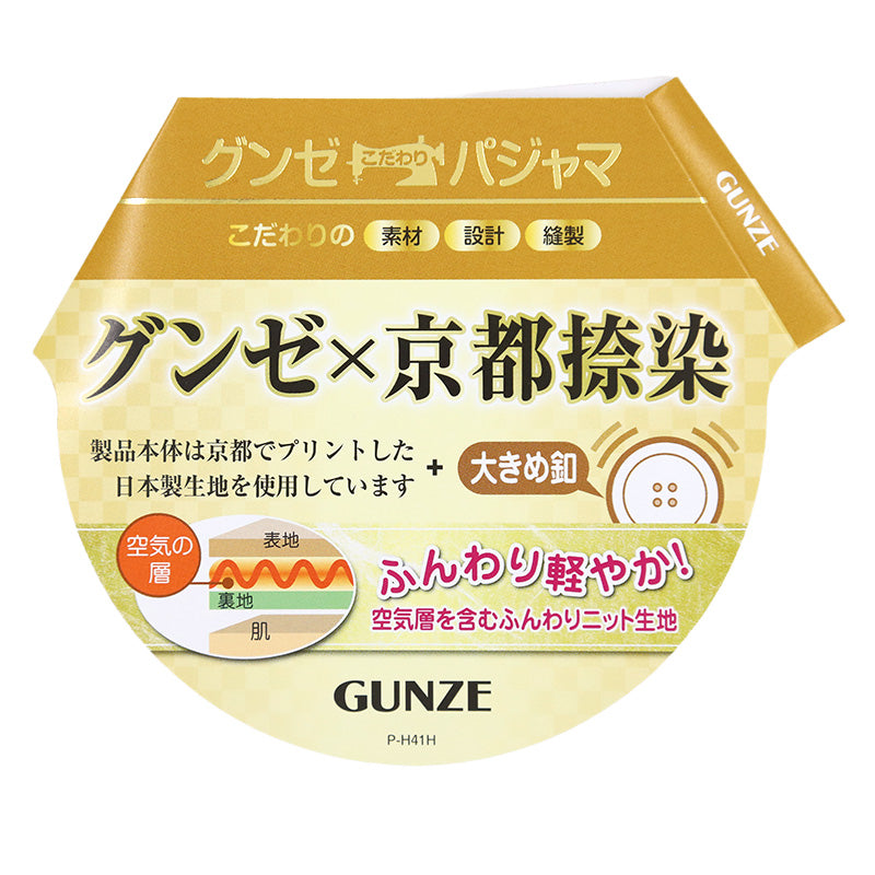 京都捺染 大き目ボタン 袖口・足口ゴム通し穴付き 前あき(ボタン付き)