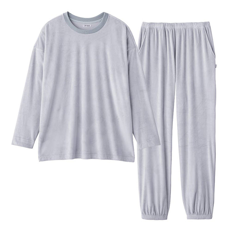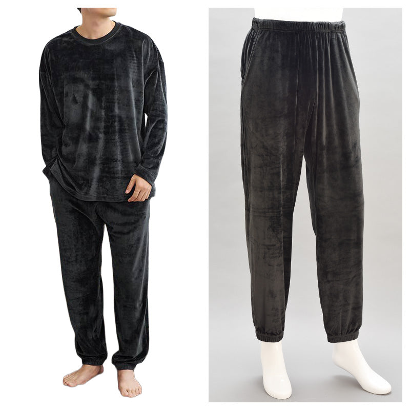 ベロアのやわらかな光沢とふんわりとした肌ざわりで、寒い夜もおうち時間も快適に過ごせるメンズルームウェアです。