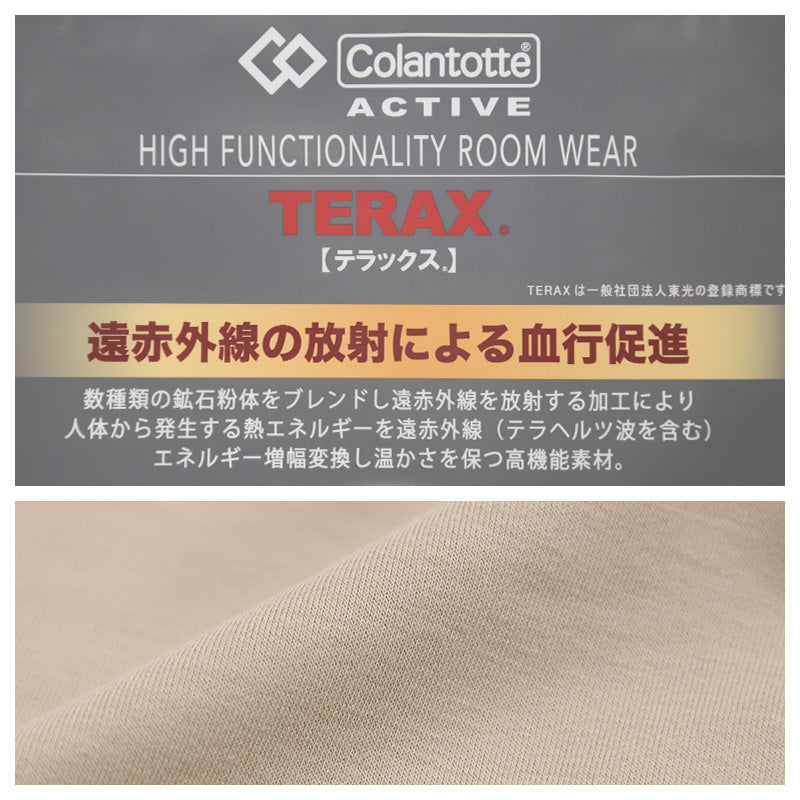 背あてと腰部分に施されたTERAX加工は、数種類の鉱石粉体をブレンドし、遠赤外線効果を活かす独自の技術です。
