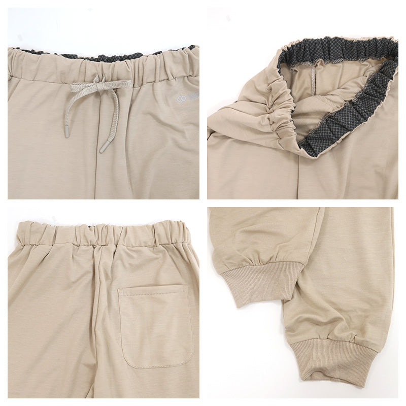 伸縮性があるため動きやすく、リラックスシーンはもちろん、ちょっとした運動やワンマイルウェアとしてもストレスなく着られます。