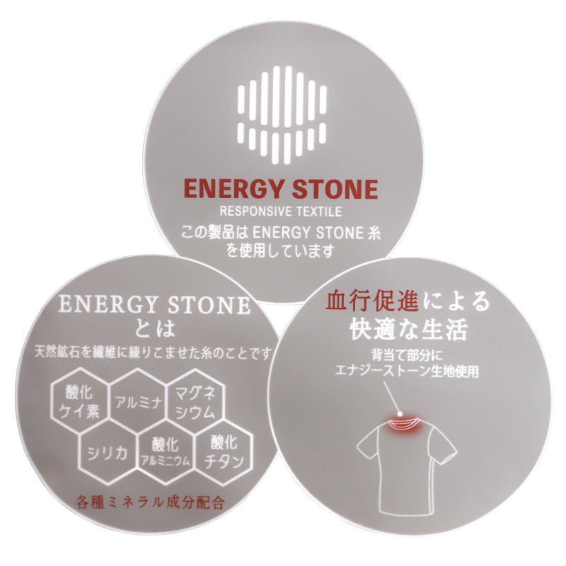 天然鉱石(酸化ケイ素、アルミナ、マグネシウム、シリカ、酸化アルミニウム、酸化チタンなど)を繊維に練り込んだ「エナジーストーン」構造を採用。