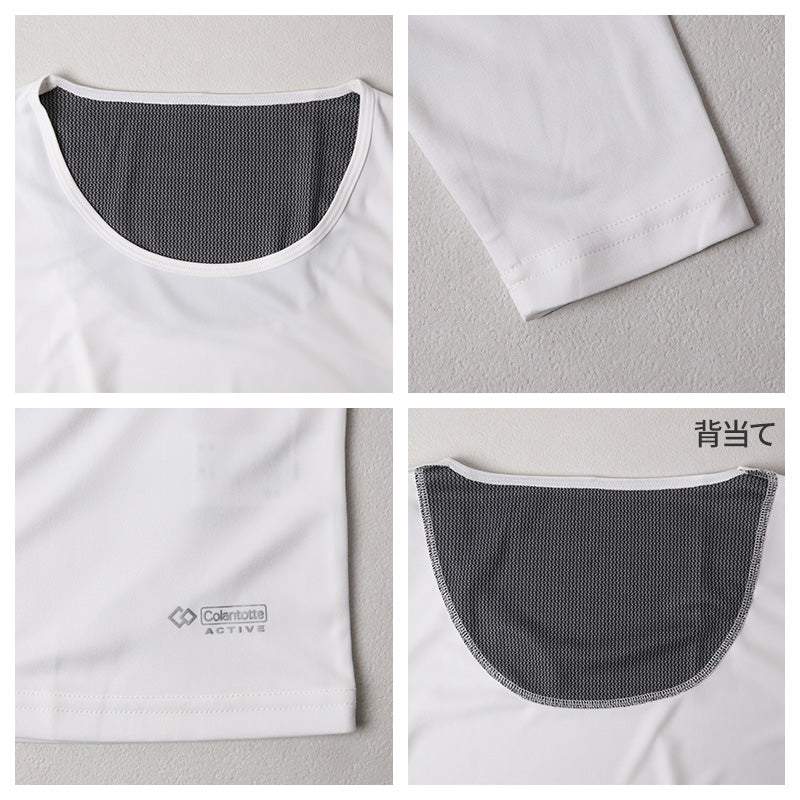 背中の背当て部分には特にこの生地を配置し、冷えを感じやすい部位もしっかりフォーカスしています。