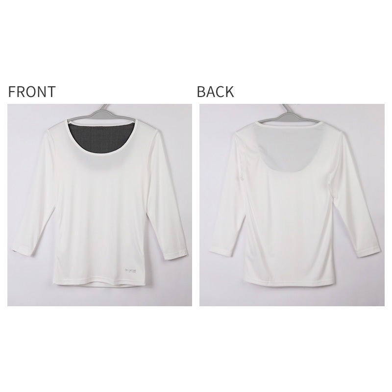• 画像をギャラリービューアに読み込む, レディース インナー 8分袖 Uネック M L LL 遠赤外線 保温 あったか 発熱 冷え対策 温活 エナジーストーン 黒 白 冷え性 インナーシャツ レディース長袖 発熱素材 保温インナー 快適 暖かい