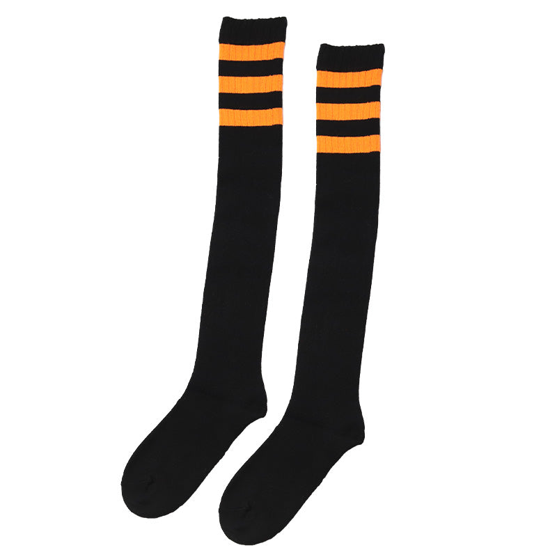 ポップなカラーが目を引く超ロング丈のオーバーニーソックス。