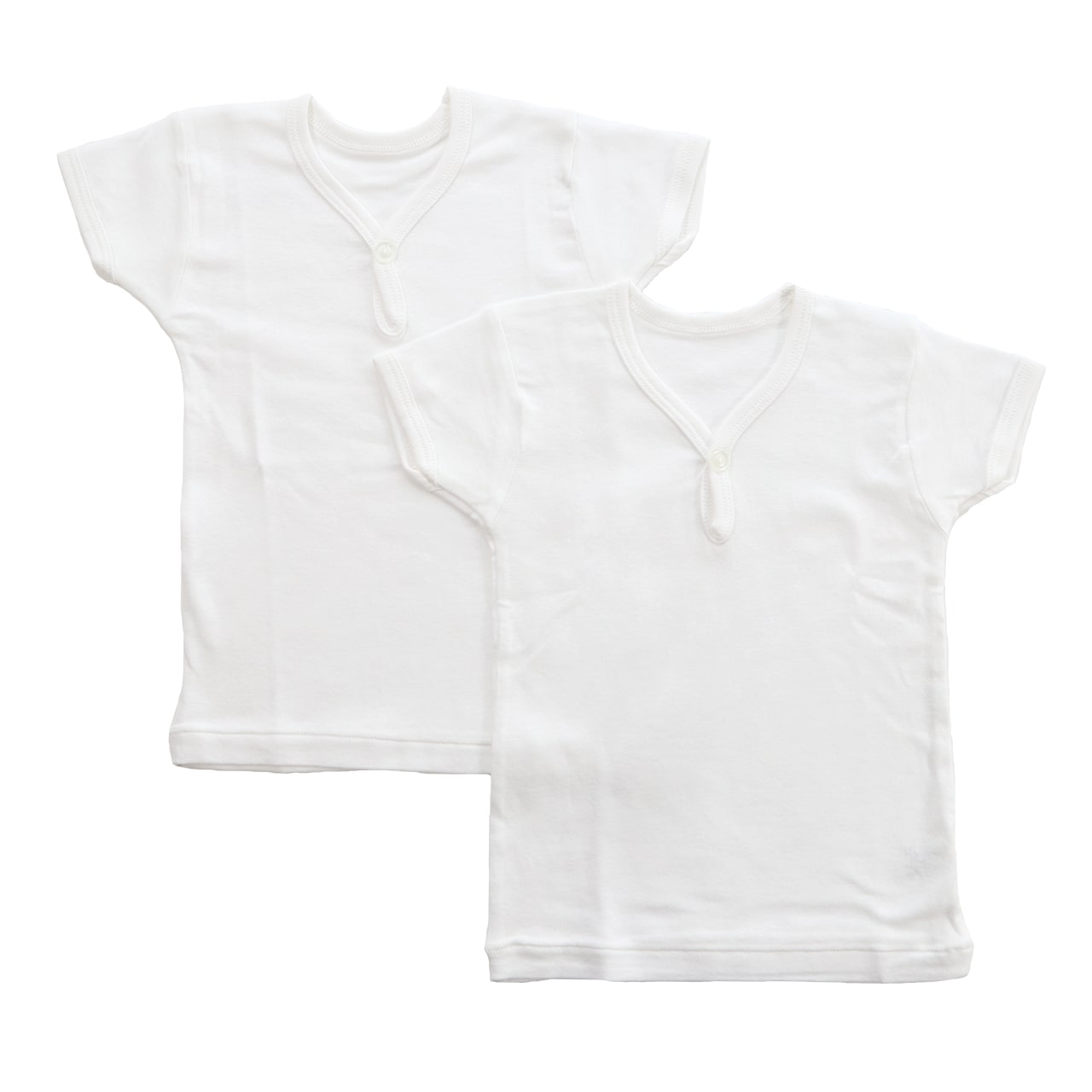 ベビー ベビー服 半袖シャツ 2枚組 一つボタン 無地 綿100% 日本製 80cm~95cm (肌着 男の子 女の子 コットン 出産準備 出産祝い ベビー用品 白 下着 ギフト プレゼント 90 95 幼児)