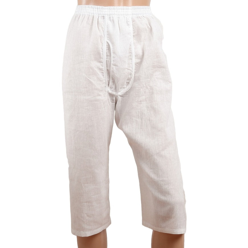 このロングパンツには綿100%のクレープ素材を使用しています。