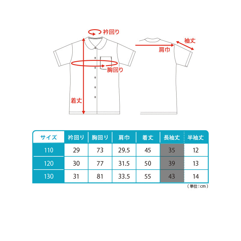 女子(女児)用半袖丸衿ブラウス(スナップボタン)です。