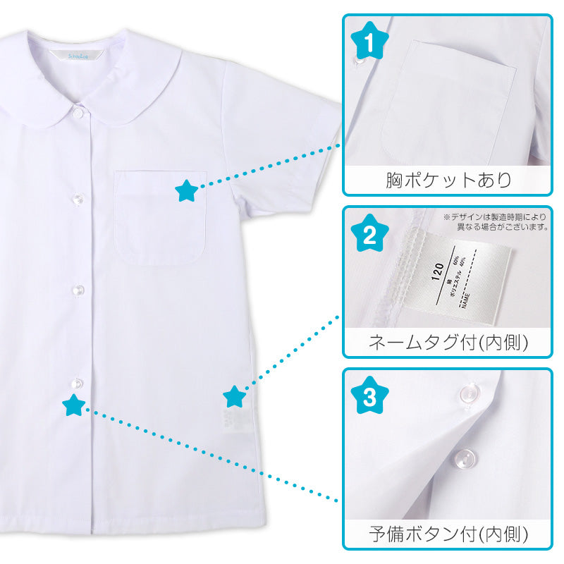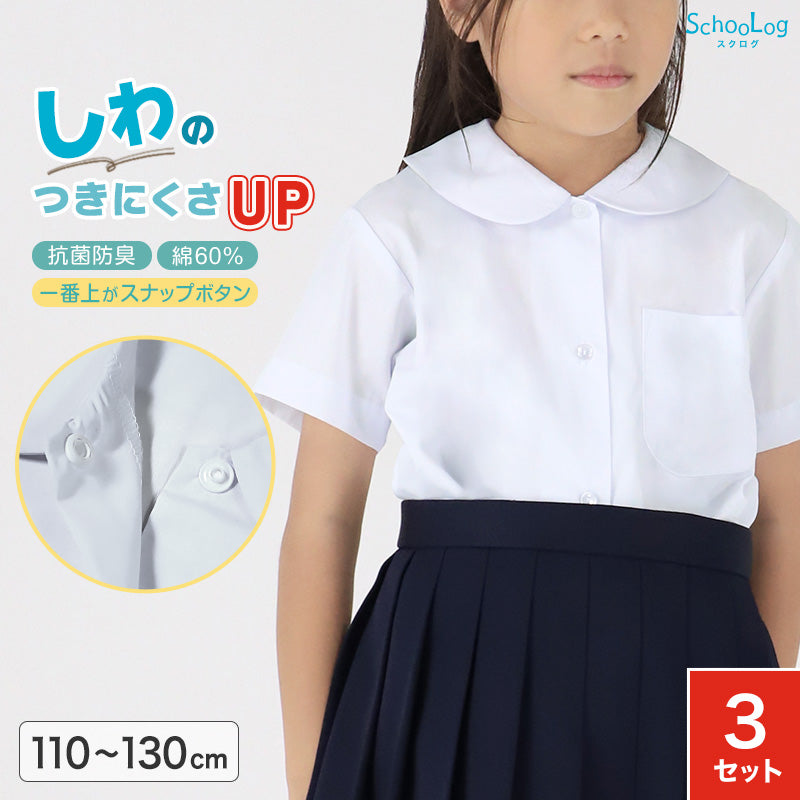 ★リニューアル★ 半袖ブラウス 第1ボタンがスナップボタン 3枚セット スクールシャツ 半袖 女子 ブラウス 学生 半袖シャツ 丸襟 小学生 フォーマル 110cm~130cm