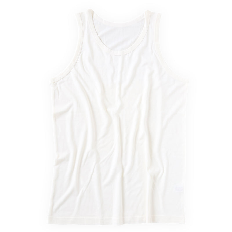 リラックスした着心地が魅力の メンズ シルク&コットンタンクトップです。