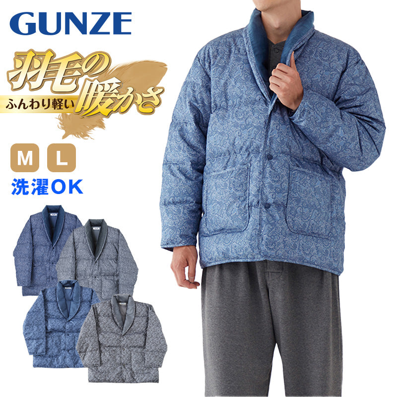 【メンズ】/【パジャマ・ルームウェア】/【M】/【L】/【GUNZE[グンゼ]】/【羽毛の暖かさ・マイクロボア起毛】/【グレー系】/【ブルー系】/【ダウン素材】/【冬物】