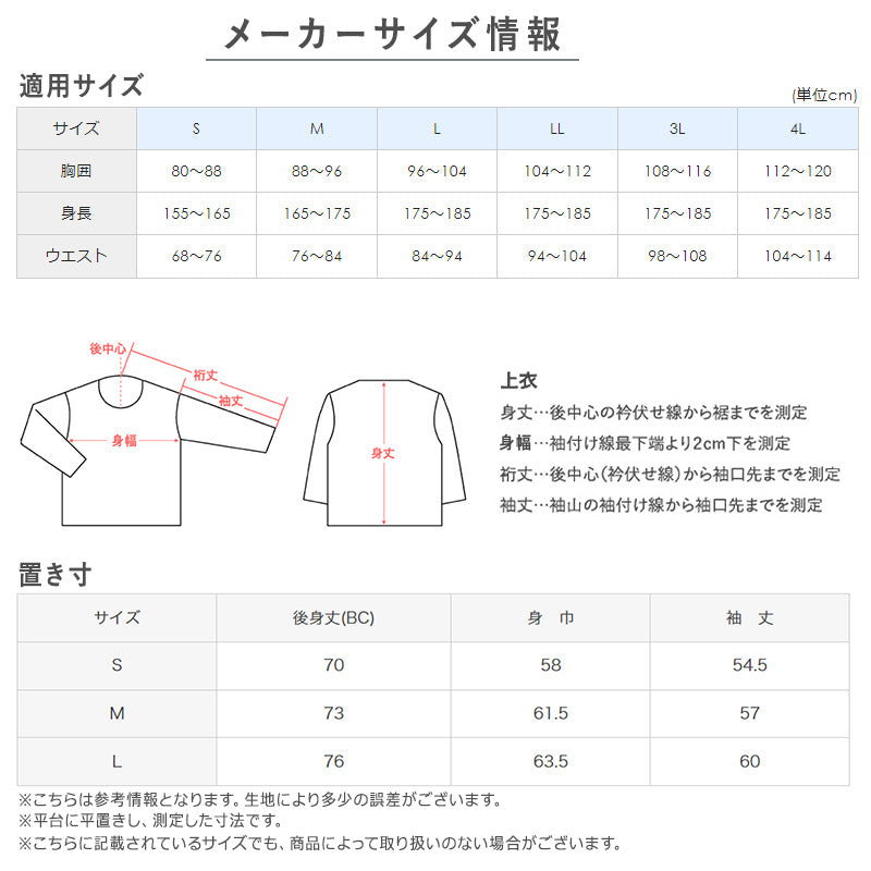L(身長:175-185cm/胸囲:96-104cm) - 【カラー】