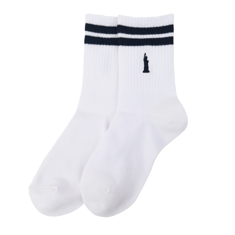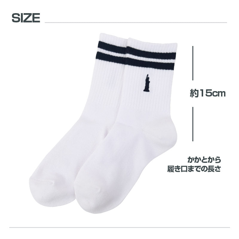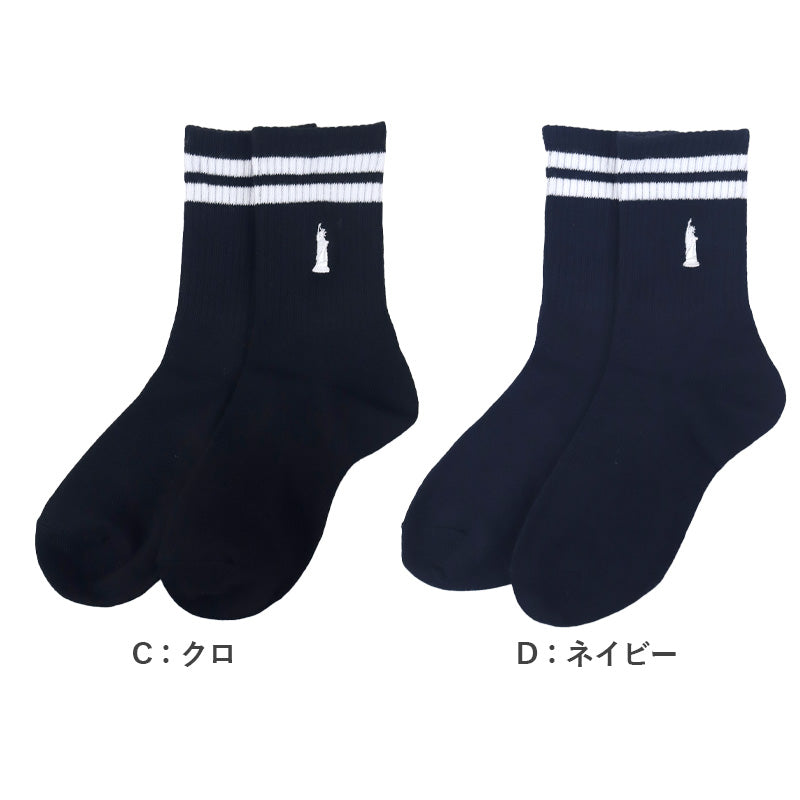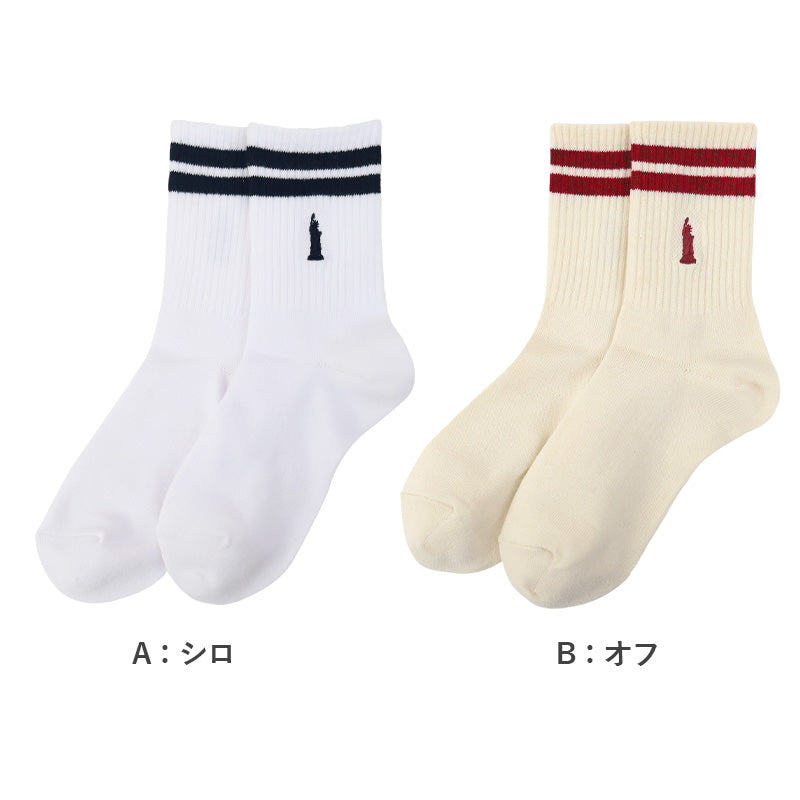 自由の女神がデザインされた刺繍入りの定番クルーソックスです。