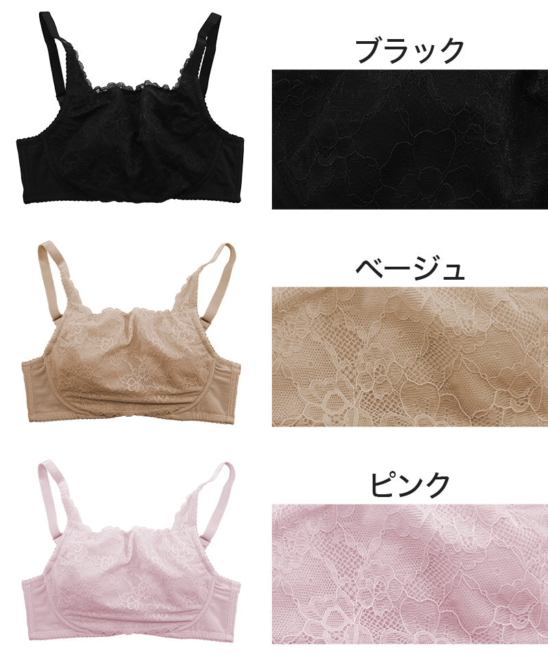 また、ほどよく伸びて伸縮性のあるストレッチレースを使用しているので、美しく華やかな印象でありながら、締め付けすぎずやさしいつけ心地です。