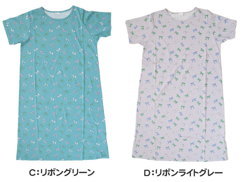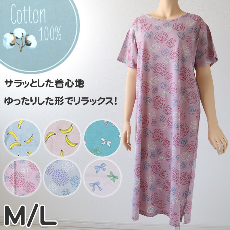 ルームウェア ワンピース パジャマ 半袖 レディース ネグリジェ 綿100 春夏 夏用 かわいい 涼しい 部屋着 110cm丈