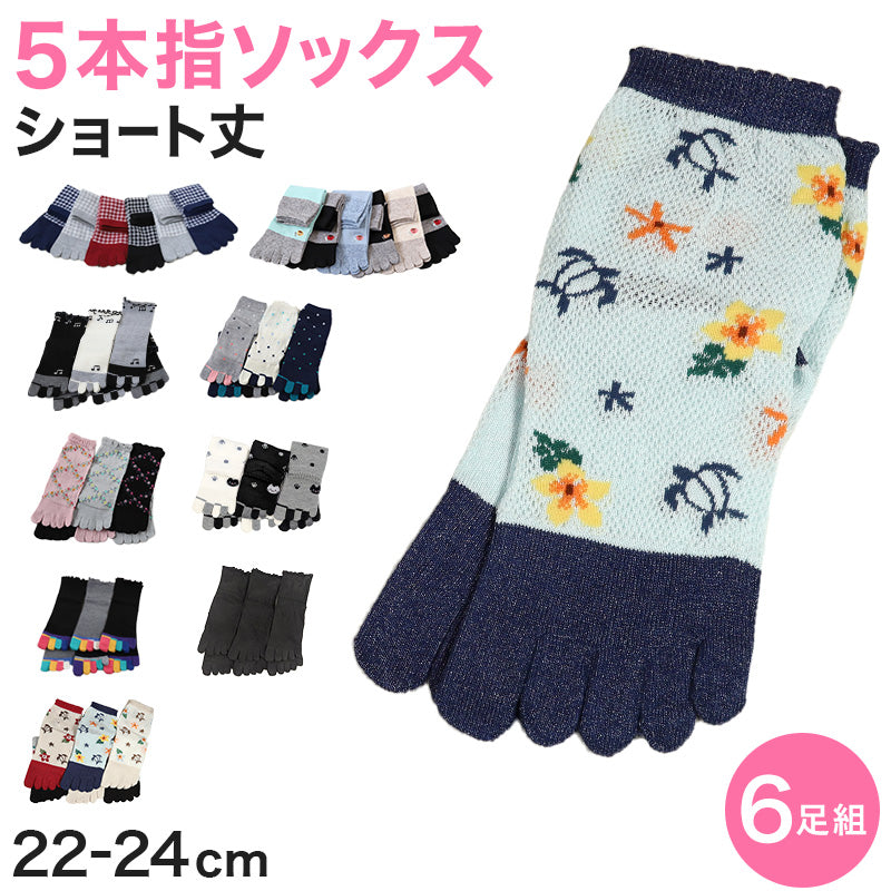 【 お得 】 レディース 5本指ソックス 五本指靴下 ショートソックス 6足組 22-24cm