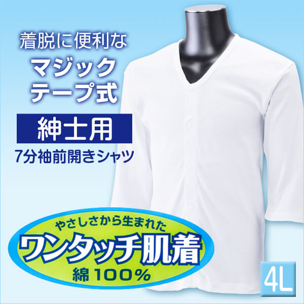 前開きシャツ 紳士 介護 下着 7分袖 インナー 4L