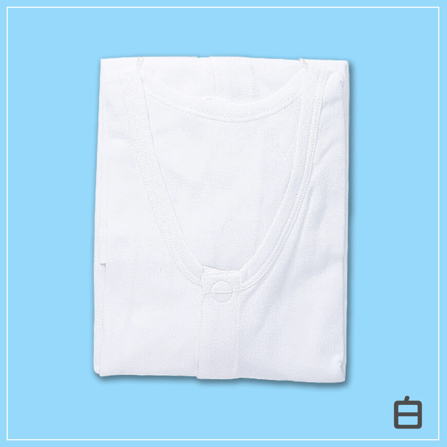 マジックテープ式で半袖前開きになるメンズ(男性・紳士)用ワンタッチ肌着です。