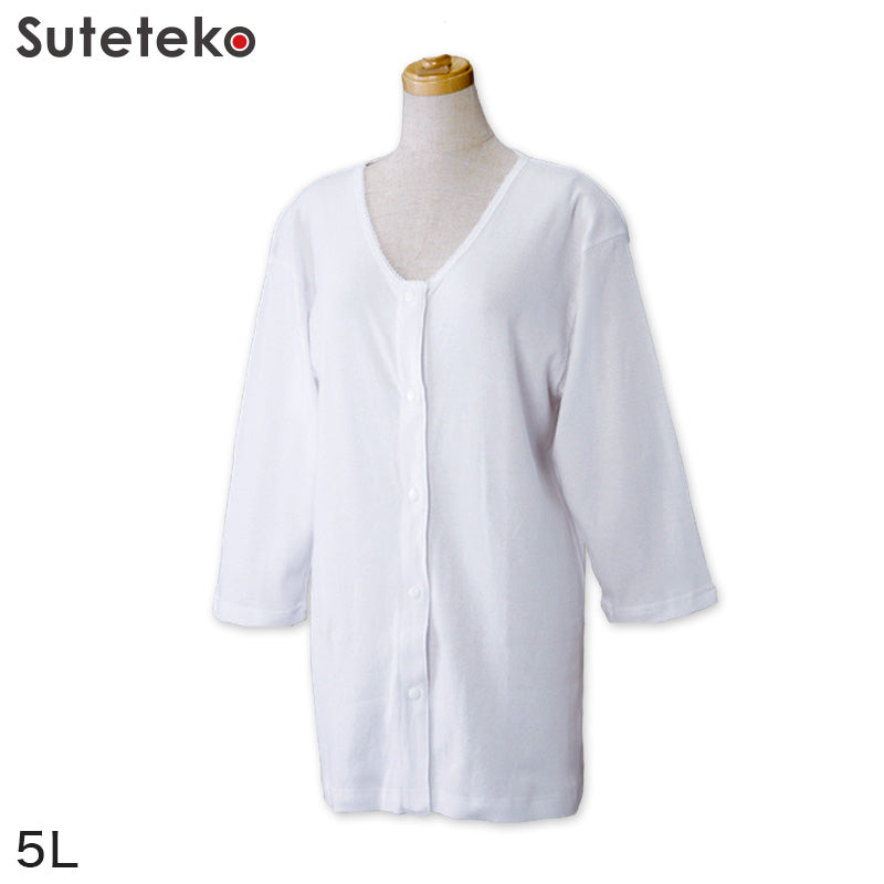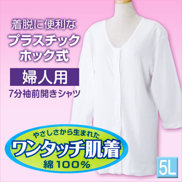 前開きシャツ 婦人 介護 7分袖 下着 インナー 5L