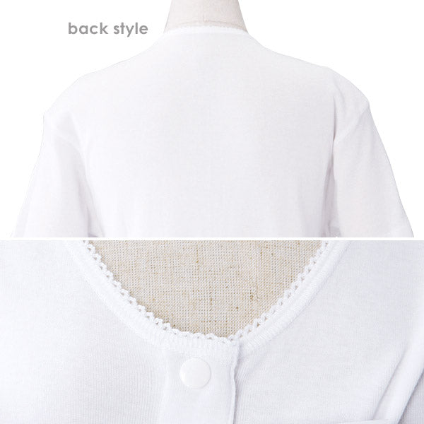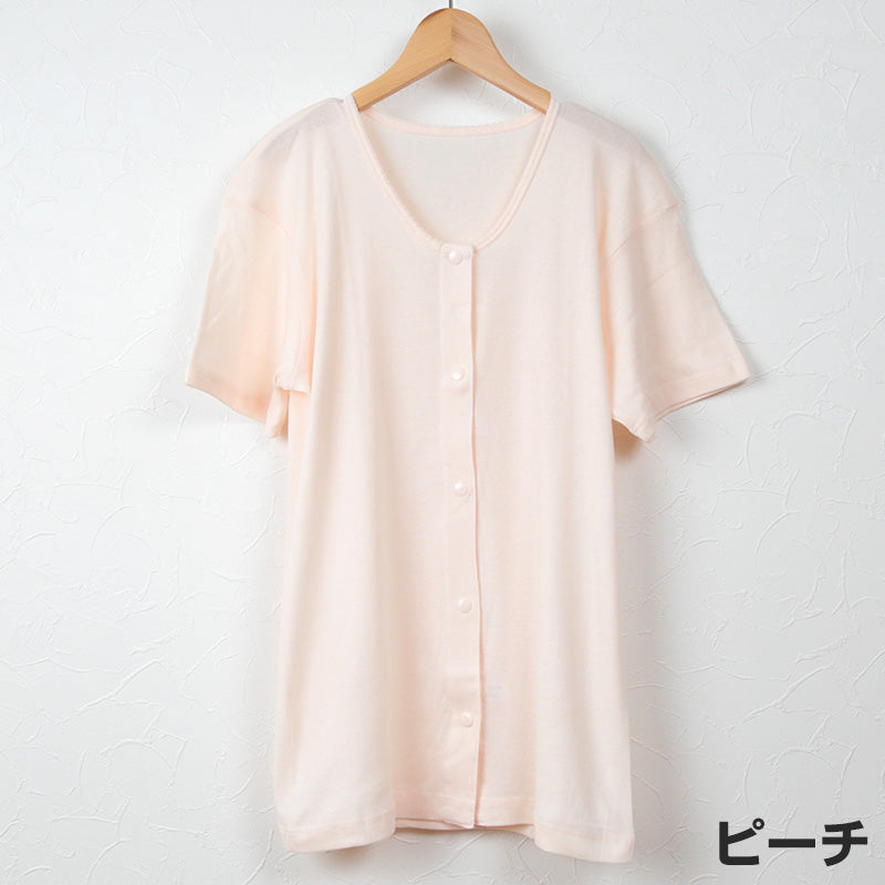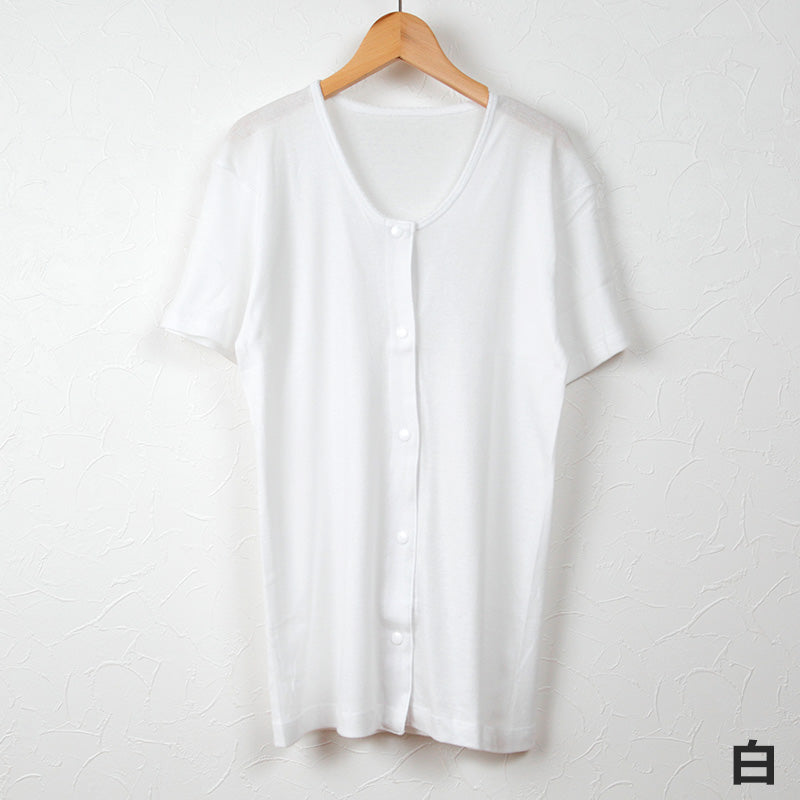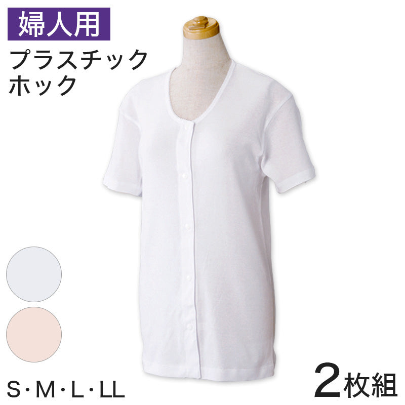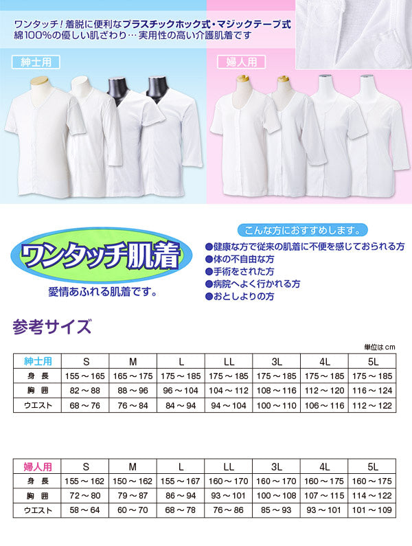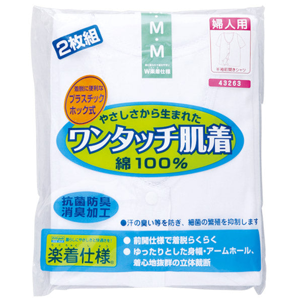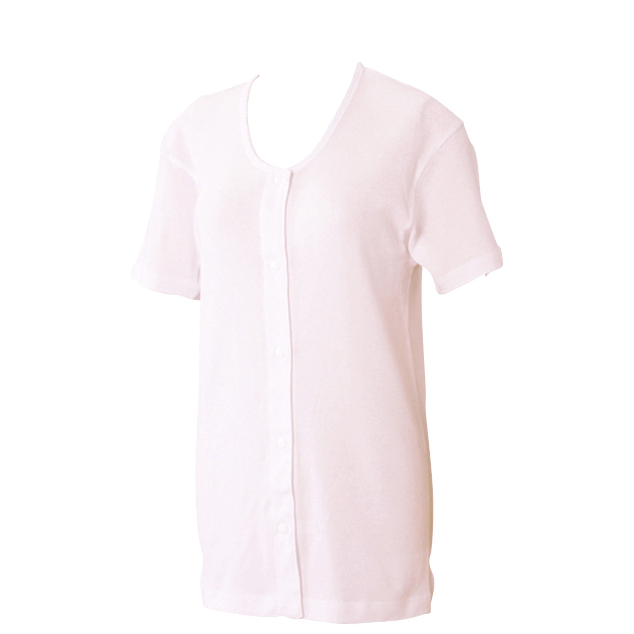 プラスチックホック式で半袖前開きになるレディース(婦人・女性)用ワンタッチ肌着です。