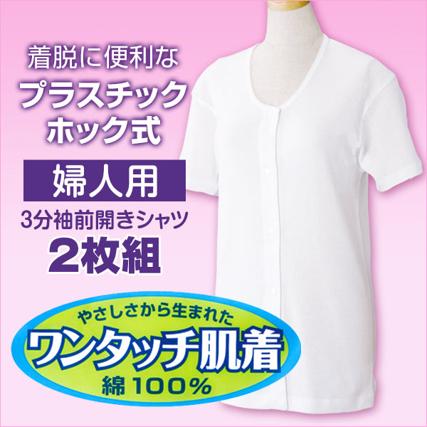 ワンタッチ肌着 プラスチックホック式3分袖前開きシャツ 2枚組 S~LL