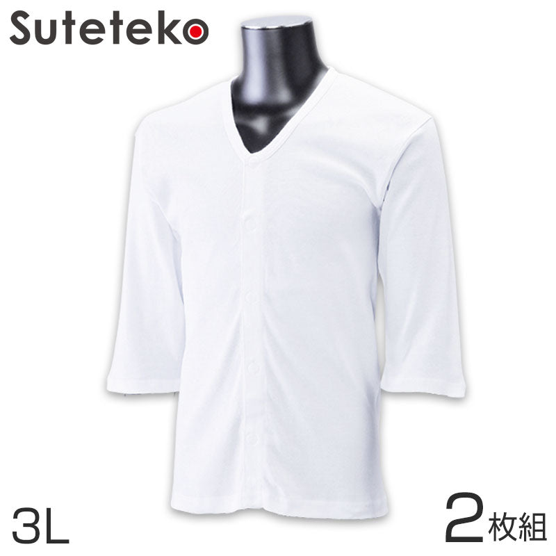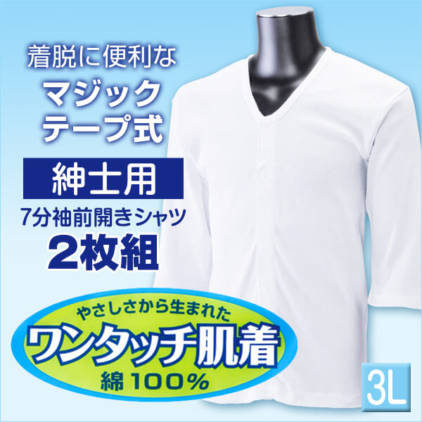 前開きシャツ 紳士 介護 下着 7分袖 インナー 3L 2枚組 3L