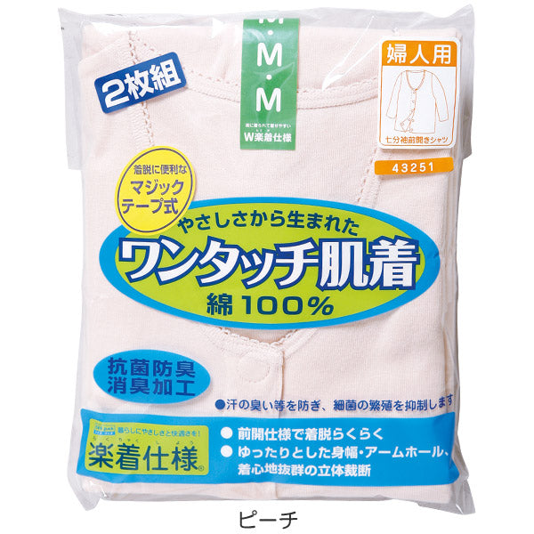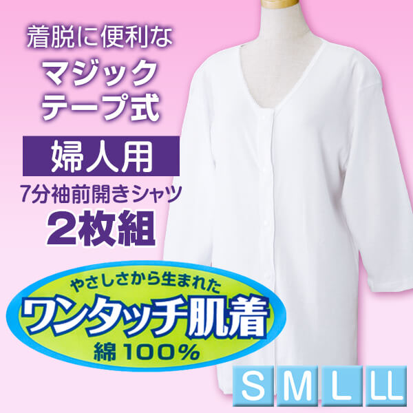 ワンタッチ肌着 婦人用 マジックテープ式7分袖前開きシャツ 2枚組 S~LL