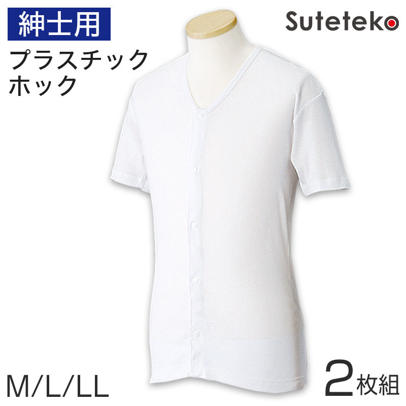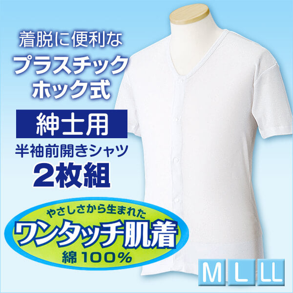 ワンタッチ肌着 紳士用プラスチックホック式半袖前開きシャツ 2枚組 M~LL