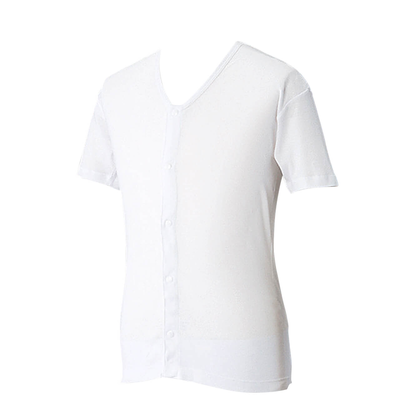 プラスチックホック式で半袖前開きになるメンズ(男性・紳士)用ワンタッチ肌着です。