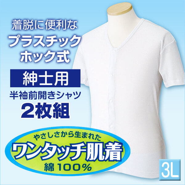 前開きシャツ 紳士 介護 下着 半袖 インナー 3L 2枚組 3L